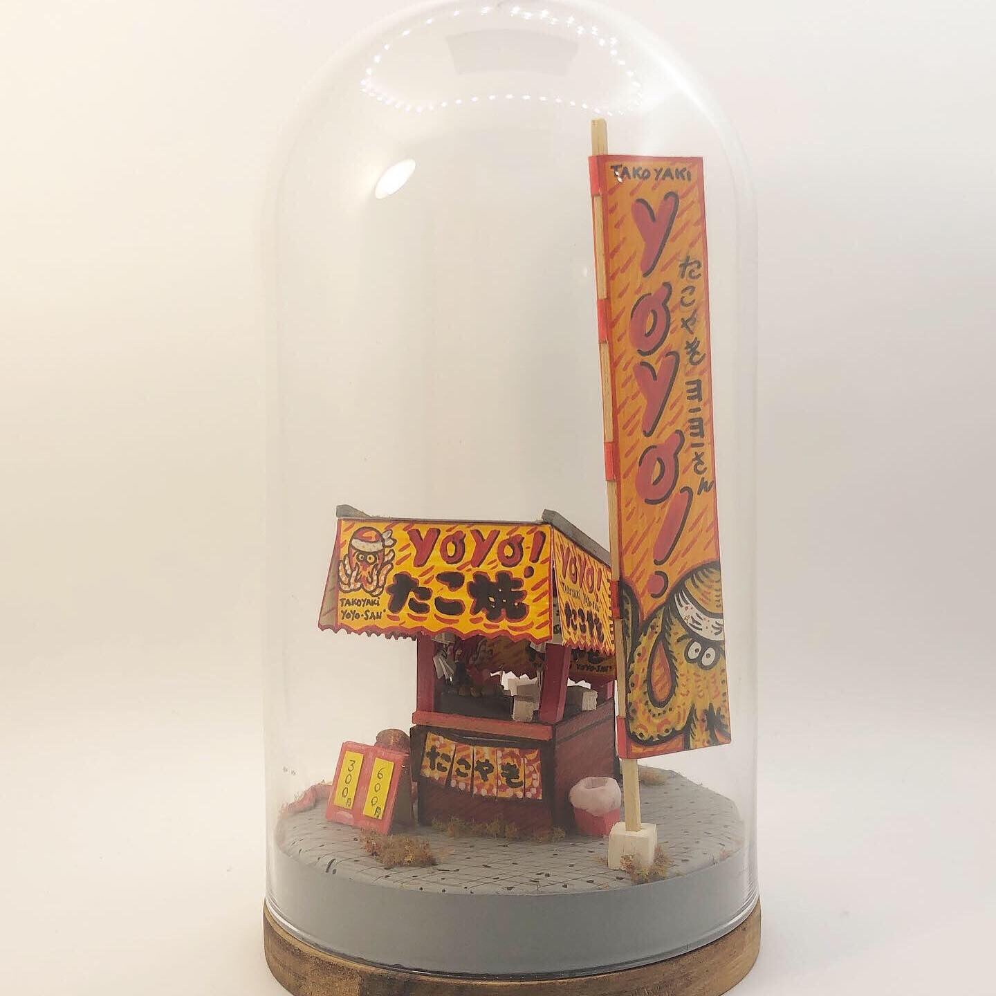 Here it is the miniature replica of a typical street food stand you can find all over Japan. This one is selling a delicacy named Takoyaki.